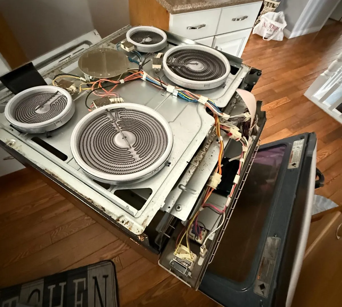 We check OEM availability for common components like bake elements, infinite switches, and control boards, load pre-stocked parts and assign a certified electric technician.